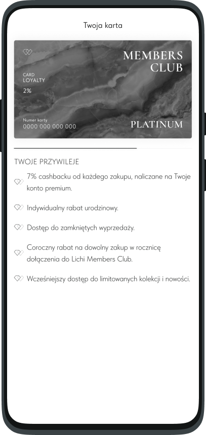 Zarejestrowani członkowie Lichi Members Club mają dostęp do szerokiej gamy przywilejów. Tworzymy najlepsze warunki do wygodnych i efektywnych zakupów, dlatego dobieramy spersonalizowane oferty i tworzymy unikalną więź między marką a Kupującym